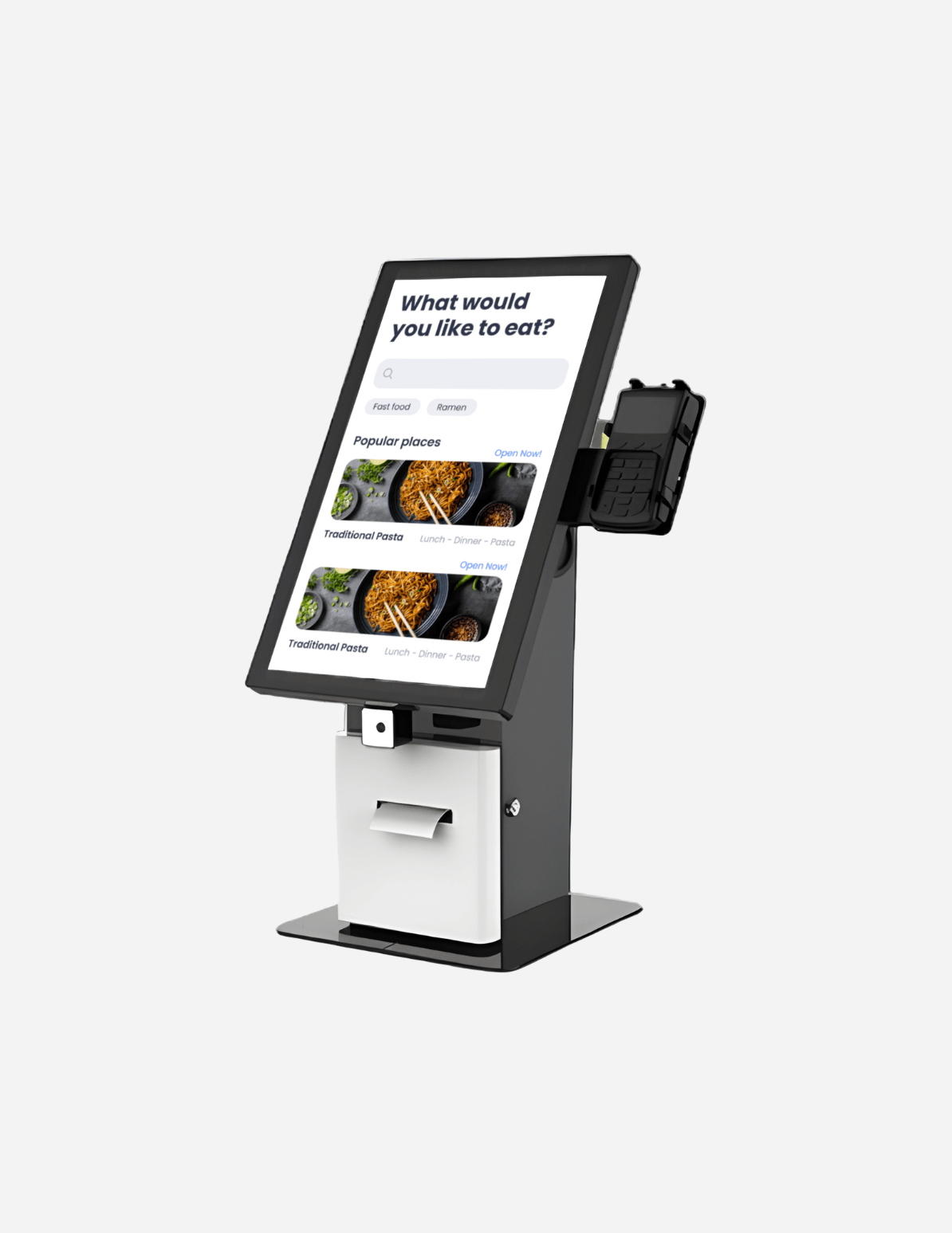 The Globalis Desktop Terminal is a compact self-service kiosk built for high-speed ordering and seamless payment processing.