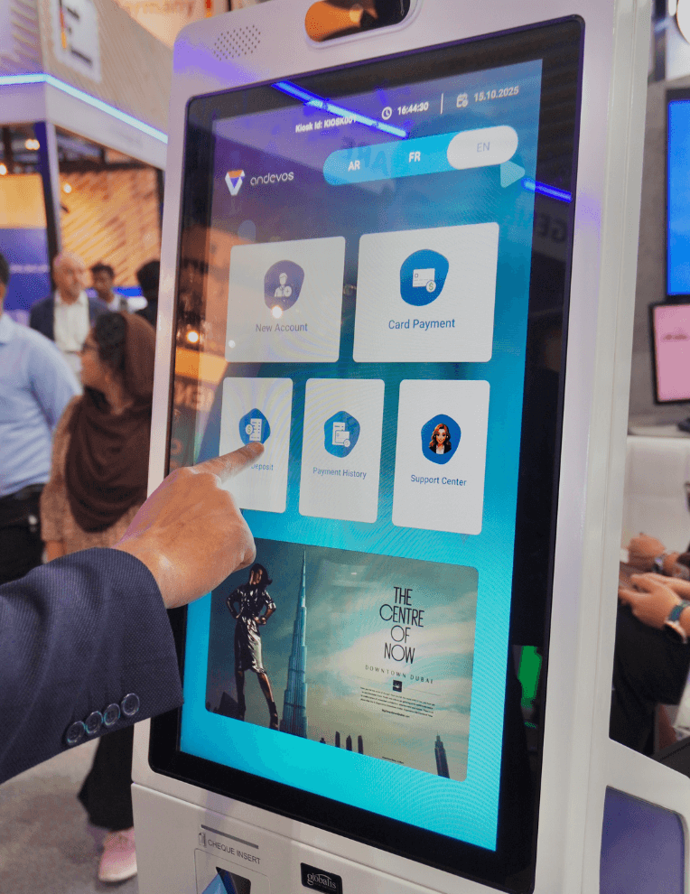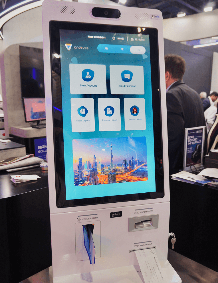 We’ve partnered with ANDEVOS, a technology company that stands out for its expertise in software development, AI, and data analytics. Together, we deliver a complete software application, designed for modern financial needs, seamlessly integrated with the GLOBALIS Kiosk and the bank’s systems.