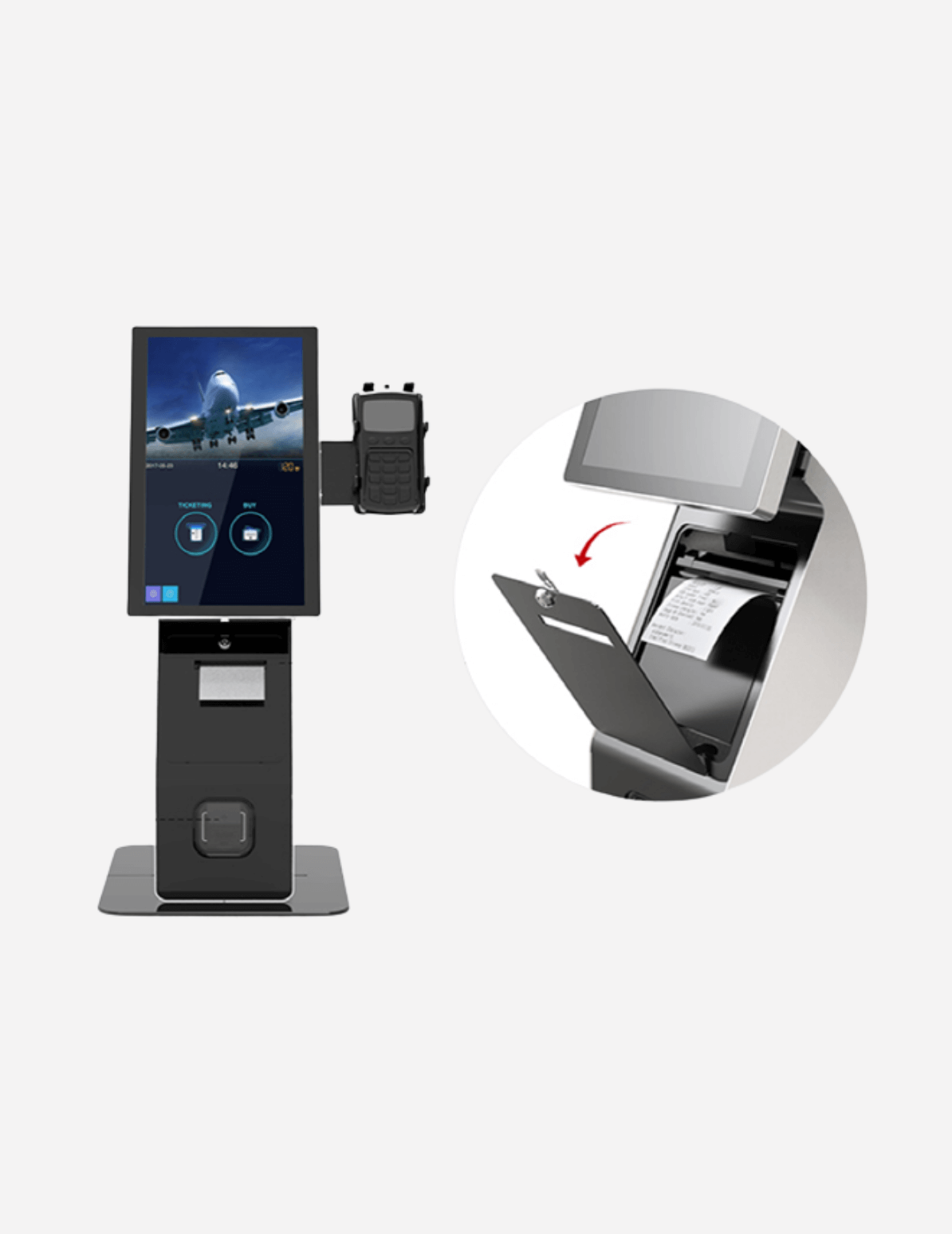 Engineered for high-traffic environments, the kiosk offers robust performance and long-term durability, even in demanding conditions.