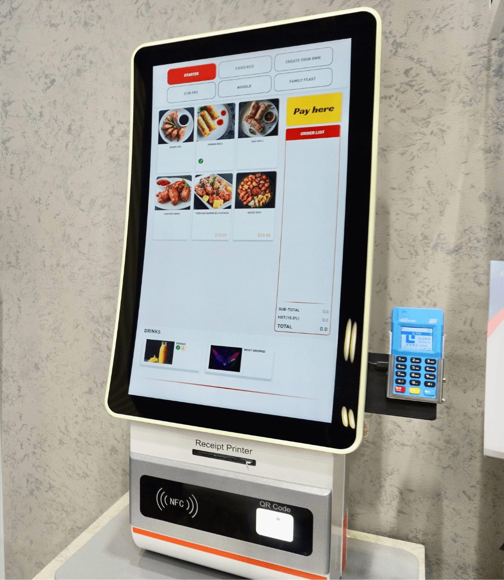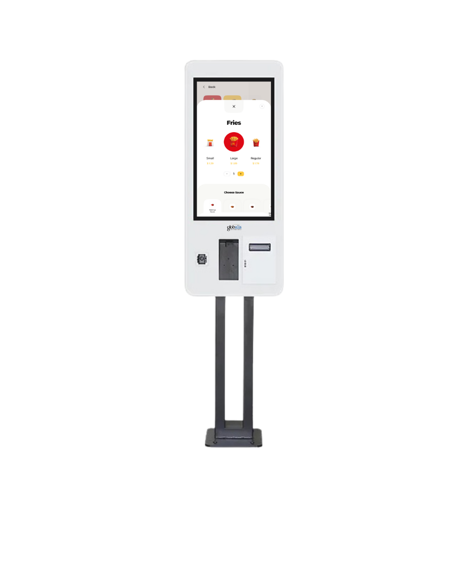 The Globalis Desktop Terminal is a compact self-service kiosk built for high-speed ordering and seamless payment processing.